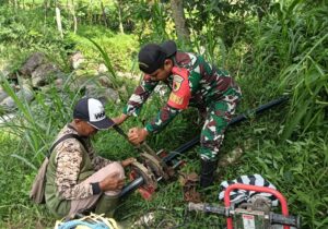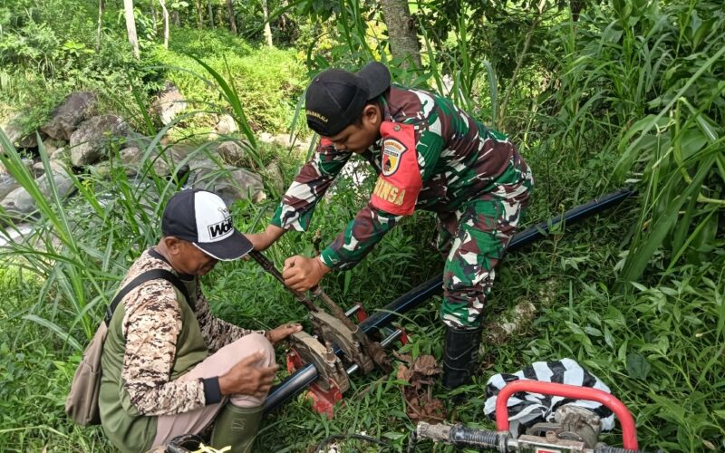 Bantu Kesulitan Warga, Babinsa Jogorogo Bantu Pemasangan Pipa Saluran Air Bersih