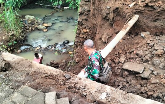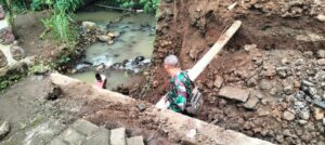 Jembatan Ambrol di Ngrambe Akibat Hujan Deras, Babinsa Serka Agung Turun Langsung ke Lokasi