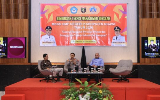 Ngawi , indonesia-jaya.com– Kegiatan Bimbingan Teknis (Bimtek) Manajemen Sekolah bagi Musyawarah Kerja Kepala Sekolah (MKKS) SMP Negeri se-Kabupaten Ngawi Tahun...