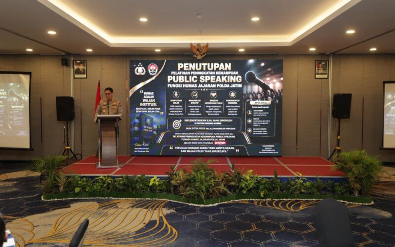 SURABAYA, indonesia-jaya.com– Bidang Humas Polda Jawa Timur menggelar pelatihan public speaking bagi jajaran Humas dan Pejabat Pengelola Informasi dan Dokumentasi...
