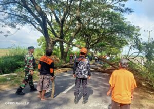 Babinsa Koramil Paron Bersama Warga Bersihkan Ranting Pohon di Jalan Raya Klitik–Paron