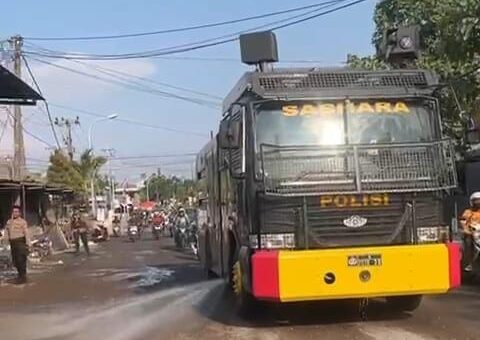 GRESIK , indonesia-jaya.com-Mobil operasional Water Cannon Satuan Samapta Polres Gresik Polda Jawa Timur tampak diterjunkan di jalan raya Yosowilangun -...