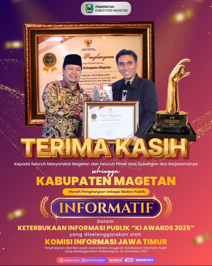 Dengan diraihnya predikat Badan Publik Informatif pada 2025 ini, Magetan menegaskan posisinya sebagai salah satu kabupaten yang berkomitmen kuat terhadap transparansi dan partisipasi publik dalam pembangunan daerah.(Lina)