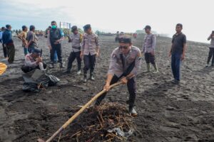 Polres Lumajang Gelar Aksi Bersih – bersih Wujudkan Pantai Watu Pecak Asri