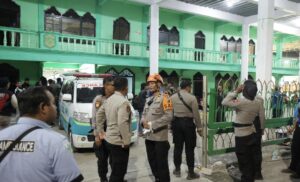 Personel disebar ke sejumlah titik strategis mulai dari pintu masuk, posko pengamanan, hingga mendampingi tim gabungan yang berada di area reruntuhan.