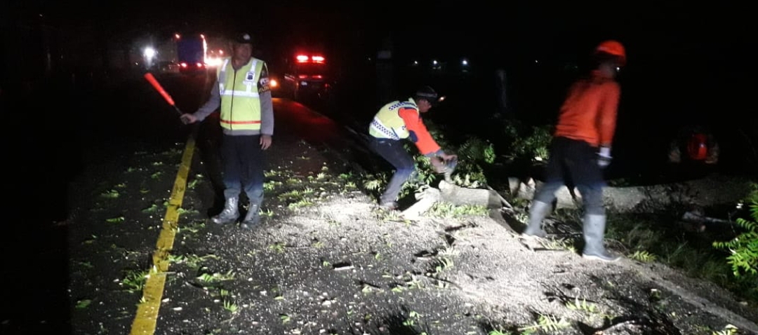 Sesuai sasaran kegiatan, petugas melaksanakan pengamanan dan pengaturan lalu lintas (Pam Tur Lalin) di lokasi kejadian sekaligus melakukan evakuasi batang pohon tumbang yang melintang di jalan. Berkat kerja sama lintas unsur tersebut, proses evakuasi dapat diselesaikan dengan cepat, sehingga arus lalu lintas kembali lancar dan normal.
